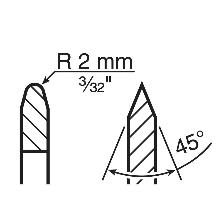 Für die Tormek profilierte Lederabziehscheibe LA-120 mit schmäleren Profilen. Eine mit Radius 2 mm und eine mit 45° Spitze.