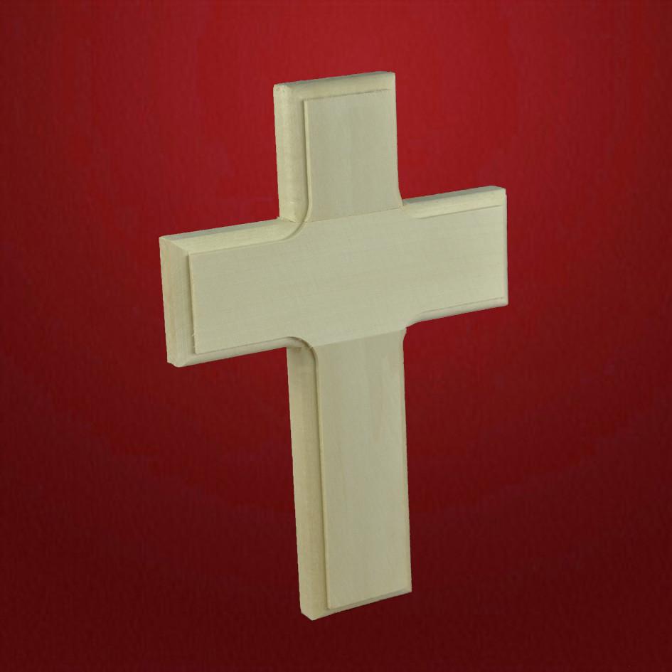 Dieses kleine Kreuz lässt sich mit vielfältigen Kerbschnittmustern verzieren. Der Rand der zweiten baugleichen Variante ist zusätzlich mit einem einfachen Profil abgesetzt.
