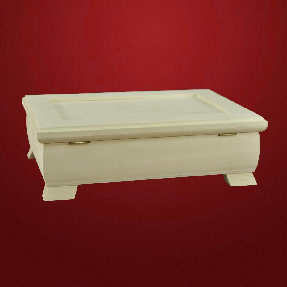 In dieser Schatulle lassen sich aufgrund der Größe bereits mehrere Kostbarkeiten verstauen. Der eingerahmte Deckel lädt zu einer zusätzlichen Verziehrung ein, die das Haupmuster in den rechten Rahmen setzen kann.