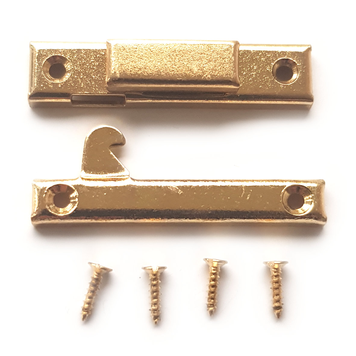 Verpackungsinhalt: 1 x Schließe + Verschlusskopf + 4 Schlitzschrauben, Eisen vermessingt (1,5 x 7 mm)