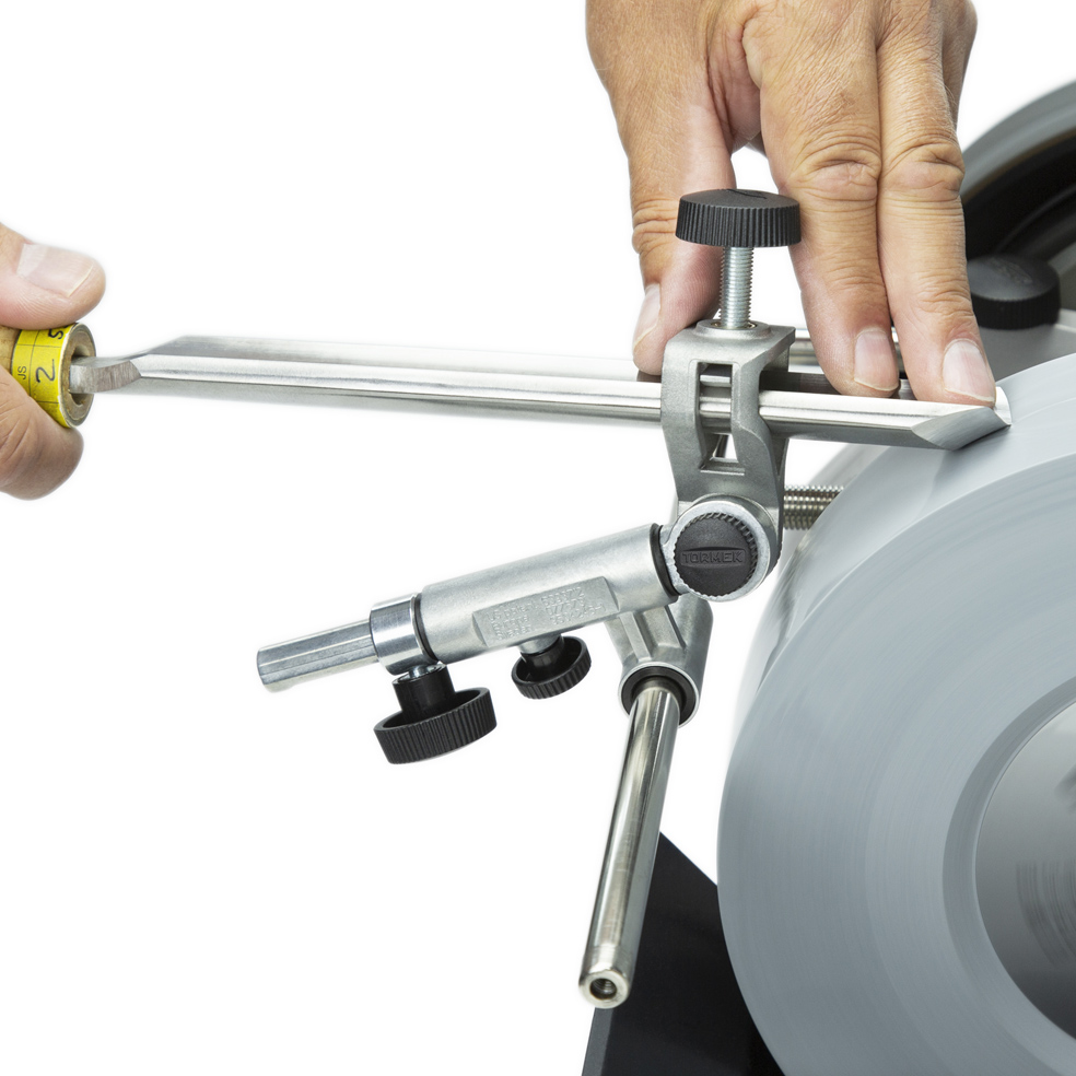 Mit einer neuen Feststellschraube können Sie jetzt die Rotationsbewegung der Vorrichtung blockieren. Mit dieser neuen Funktion wird es einfacher, beim Schärfen von Schnitzwerkzeugen, wie z. B. Geißfüßen, die volle Kontrolle zu erlangen. Mit der Feststellschraube können auch Geigen- und Kerbschnitzmesser mit der MB-100 so wie den Tormek Diamantscheiben völlig plan geschliffen werden.